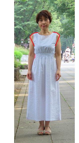 シルエットはとっても気に入っているんですが、作って着てみて一つ問題かな~と思う点がありました。