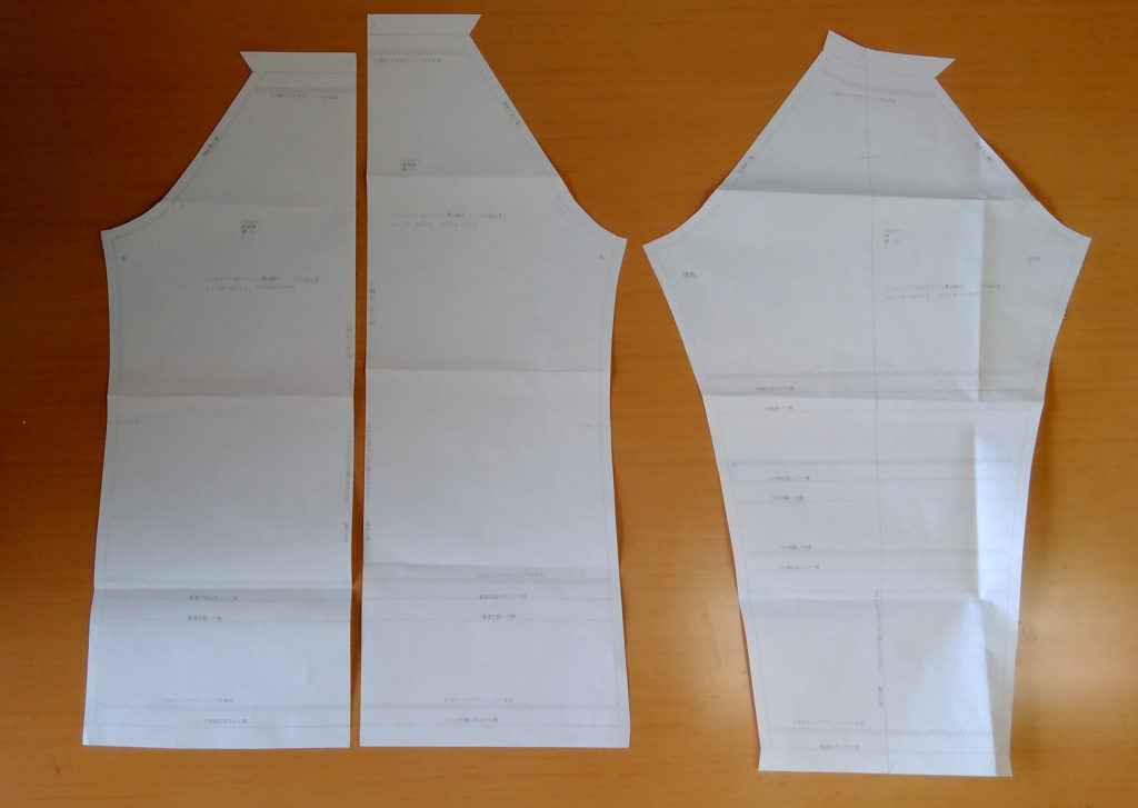 少ないパーツの型紙ですが、着丈2種類と袖丈4種類、合計8種類の形を自由に作れるようにいたしました。
