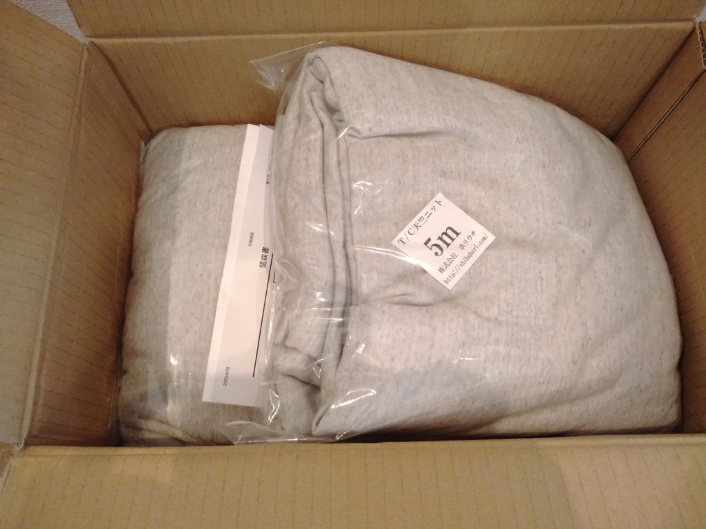 で、来ましたよ。「T/C天竺ニット」5mが2つ!